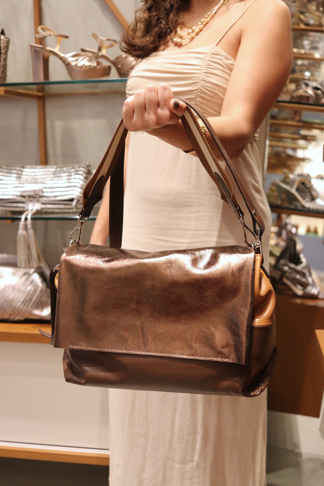 A Bolsa em Pelica tricolor une os tons café, caramelo e bronze em uma composição sofisticada e harmoniosa. Confeccionada em pelica macia, oferece toque suave e acabamento refinado. A tampa com brilho sutil adiciona modernidade e charme à peça, garantindo um visual elegante, enquanto a paleta de cores quentes proporciona versatilidade para acompanhar produções do dia a dia ou ocasiões especiais com muito estilo.