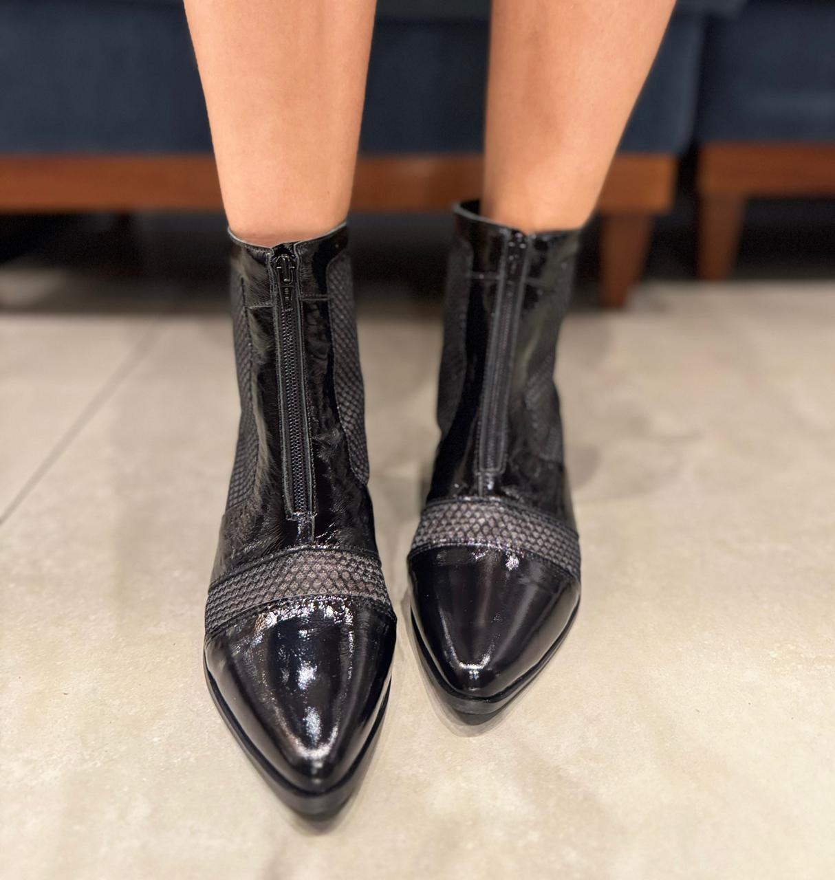 Bota Tela Verniz na cor Preta