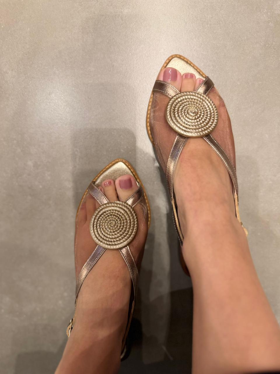 A Sandália Bico Folha Tela na cor Ouro é a escolha perfeita para quem deseja unir elegância, leveza e sofisticação em um único calçado. Com design delicado e moderno, o modelo se destaca pelo bico folha, que traz um toque refinado e diferenciado ao visual. O cabedal em tela proporciona maior respirabilidade e leveza, garantindo conforto ao longo do dia. Já a tonalidade ouro adiciona brilho na medida certa, elevando qualquer produção desde looks casuais até composições mais sofisticadas.